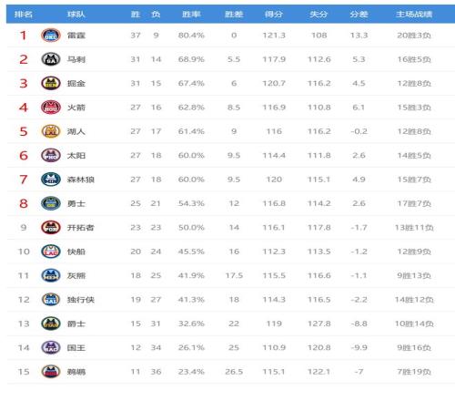 今日比赛后独行侠、灰熊排名互换,其他西部球队排名不变。